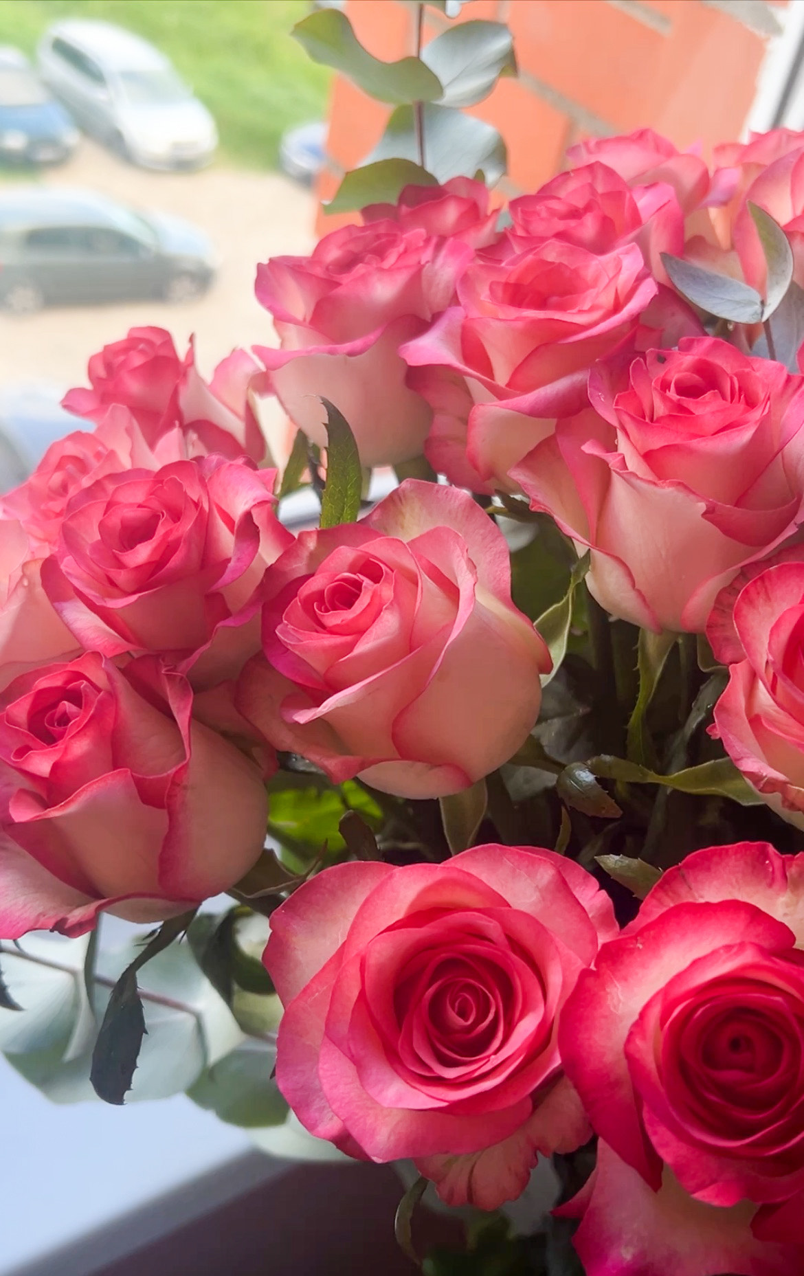 Apliecini savu mīlestību ar romantisku rožu pušķi, kas tiek veidots no 15 gab. rozā krāsas rozēm.