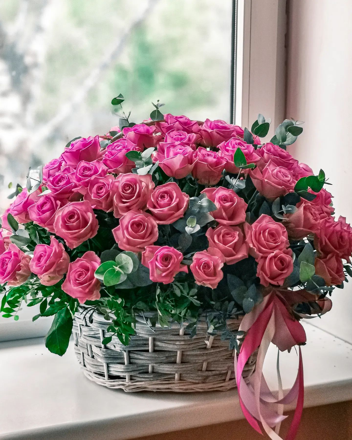 Bagātīgs rožu grozs radīs sajūsmas pilnus mirkļus ikvienai ziedu saņēmējai.